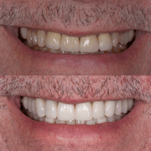 An E-max crown is an all-glass, ceramic crown made from a high-grade, durable, long-lasting ceramic called lithium disilicate. Many patients prefer it due to its natural-looking aesthetic qualities combined with its unlikelihood of being noticed amongst the natural opposing teeth. It is important to note that the E-max crown does not have a metal alloy base, which avoids any unsightly grey lines around the gum line.
